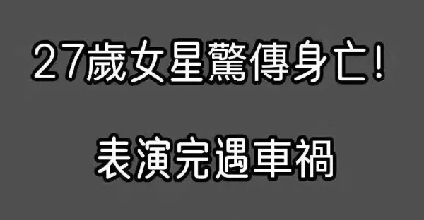 晚間快訊/27歲女星驚傳身亡!表演完遇車禍 「撞上聯結車全毀」...