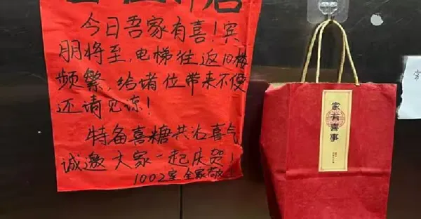家有喜事!他在電梯「放一大包喜糖」分享喜悅 最後「竟收到兩張紙條回復」網贊爆: 太有愛