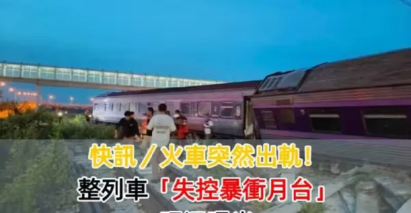 快訊/火車突然出軌!!!整列車「失控暴沖月台」現況曝光...
