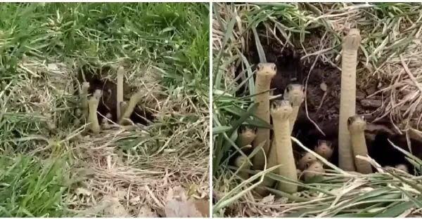 草地洞口「長了一叢菇」?鏡頭拉近赫見「陸地版花園鰻」超魔性搖頭晃腦:你找哪位~