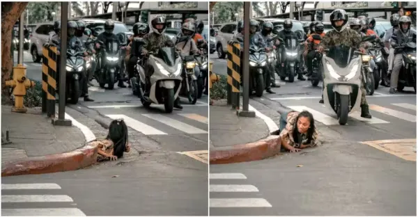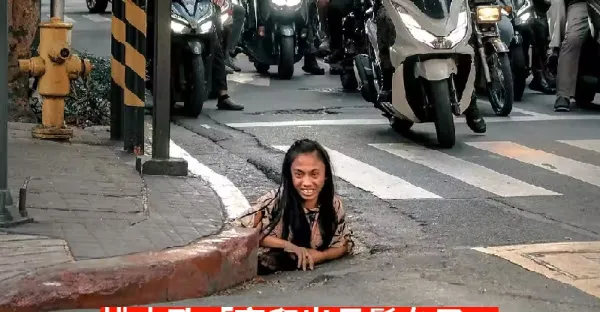 貞子翻版?排水孔「突然爬出長發女子」嚇壞路人 真實身份曝光「下面不只藏一人」