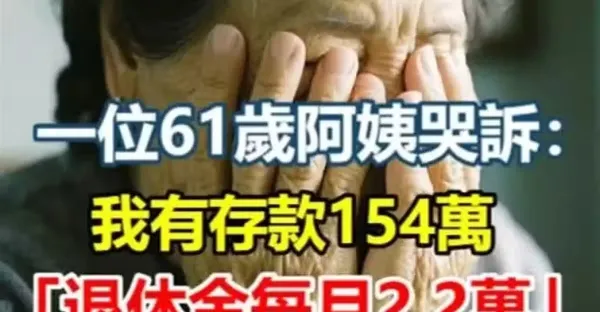 一位61歲阿姨哭訴:我有存款154萬「退休金每月2.2萬」,晚年生活卻過得悽慘 「只因走錯2步路」