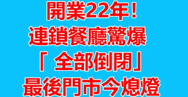 開業22年!連鎖餐廳驚爆「全部倒閉」最後門市今熄燈