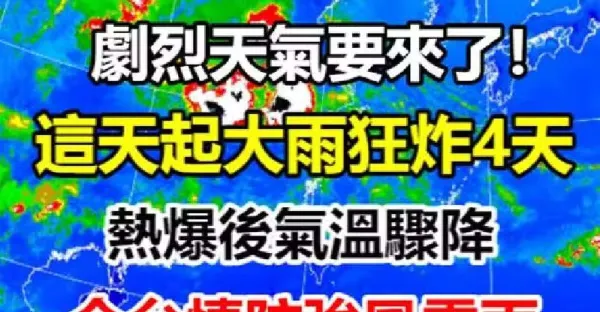 快訊/劇烈天氣要來了!熱爆後氣溫驟降「這天起雨狂炸4天」全台慎防強風雷雨