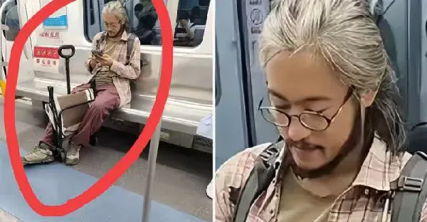 捷運遇「潮爆阿北」!白髮配球鞋狂敲手機...眾人「湊近一看」全體石化了