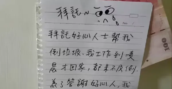 沒時間倒垃圾!!她在門口「留紙條+百元鈔」請鄰居幫倒,隔天回家一看愣住了:是我太天真
