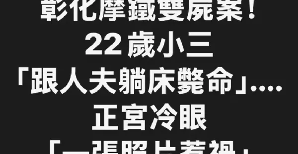 彰化摩鐵雙屍案!22歲小三「跟人夫躺床斃命」....正宮冷眼 「一張照片惹禍」