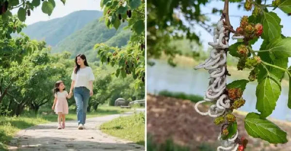 出門遊玩,女兒突然尖叫喊「那是什麼!」,寶媽順手勢望去桑樹驚現「白絲瀑布」急逃遠,看完網友評論驚出一身冷汗:還好跑得快