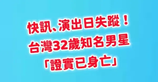 快訊/演出日失蹤 本土喜劇32歲知名男星「證實已身亡」