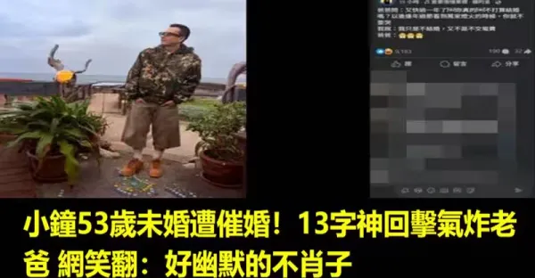 小鍾53歲未婚遭催婚!13字神回擊氣炸老爸 網笑翻:好幽默的不肖子