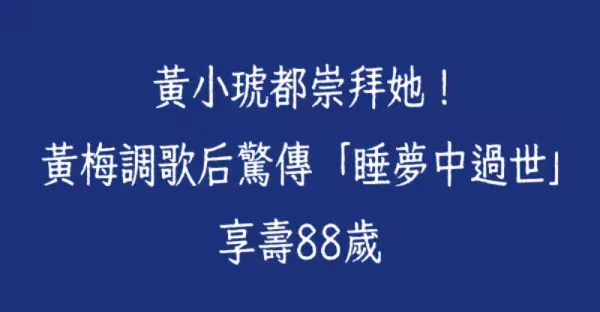 黃小琥都崇拜她!黃梅調歌后驚傳「睡夢中過世」享壽88歲