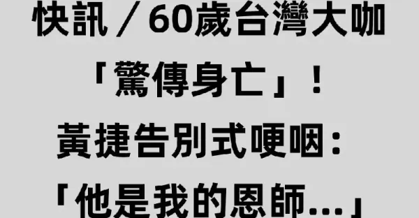 快訊/60歲台灣大咖「驚傳身亡」!黃捷告別式哽咽:「他是我的恩師...」