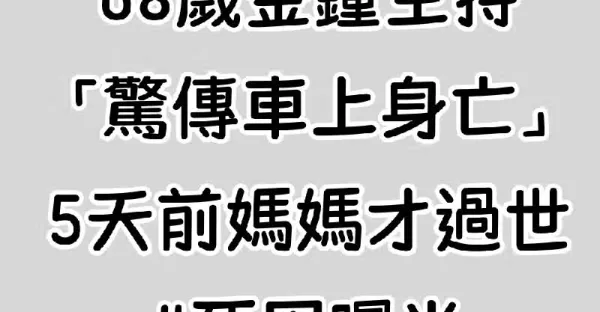 68歲金鐘主持「驚傳車上身亡」5天前媽媽才過世!#死因曝光