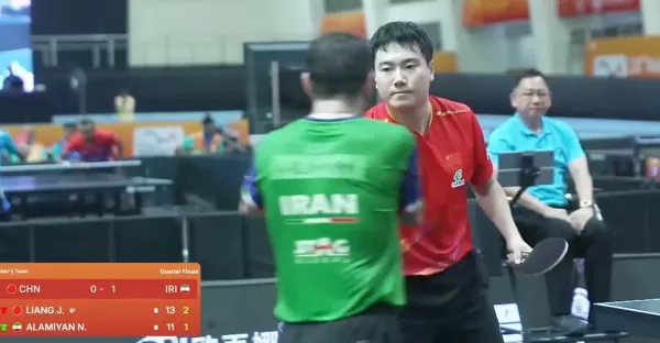 未罰黃牌引質疑!伊朗教練違規闖場,國乒3一1逆轉顯底氣
