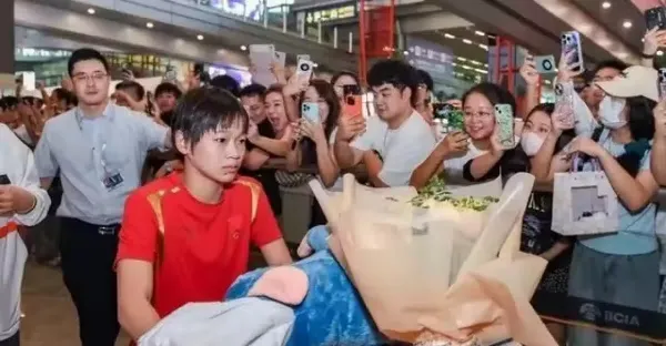 明顯差別,奧運回國, 陳芋汐由周繼紅保護,宛如慈母,全紅嬋卻被工作人員拉扯