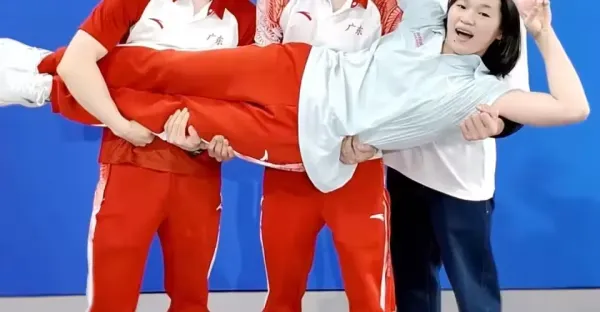 太寵!全紅嬋被三位奧運冠軍師兄聯手打橫抱起,空中比劃剪刀手
