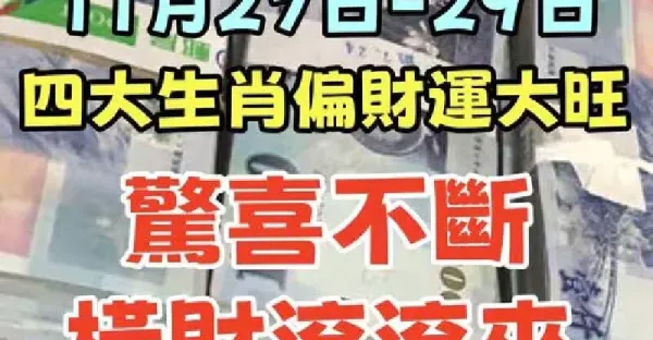 11月27日到29日,四大生肖偏財運大旺,驚喜不斷,橫財滾滾來