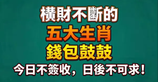 橫財不斷的五大生肖,錢包鼓鼓,今日不簽收,日後不可求!