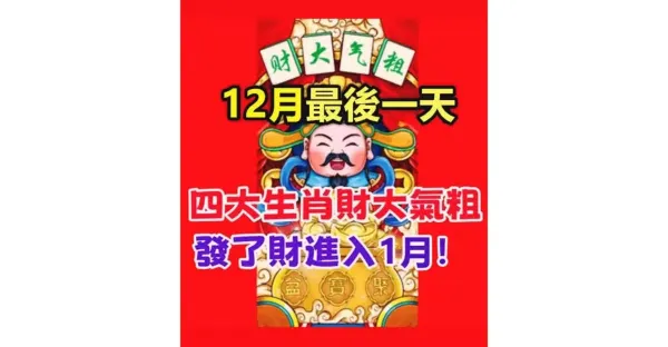 12月最後一天,四大生肖財大氣粗,發了財進入1月份!