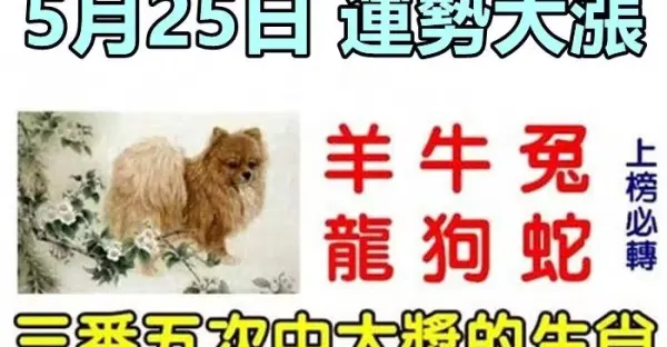 5月25日運勢大漲,三番五次中大獎的生肖有你嘛