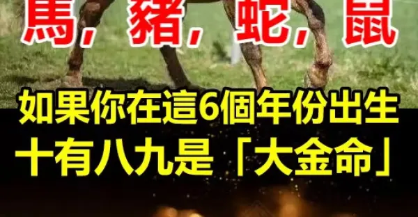 馬,豬,蛇,鼠。如果你在這6個年份出生,十有八九是「大金命!」不是富,就是貴!