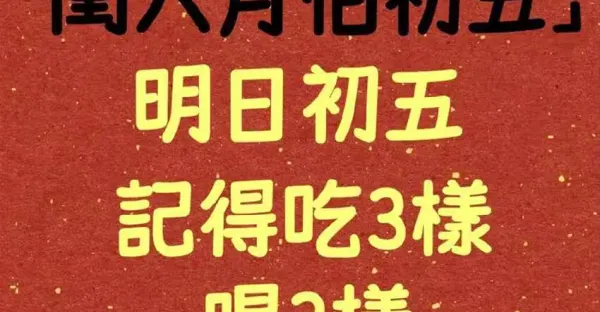 老人說「閏六月怕初五」,明日初五,記得吃3樣、喝3樣,不是迷信