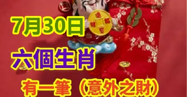 7月30日:六生肖有一筆(意外之財)鈔票滿溢,鴻運當頭