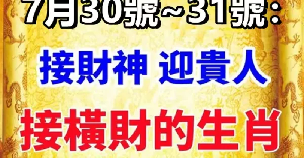 7月30號~31號:接財神,迎貴人,接橫財的生肖