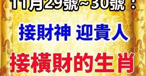 11月29號~30號: 接財神 迎貴人 接橫財的6大生肖