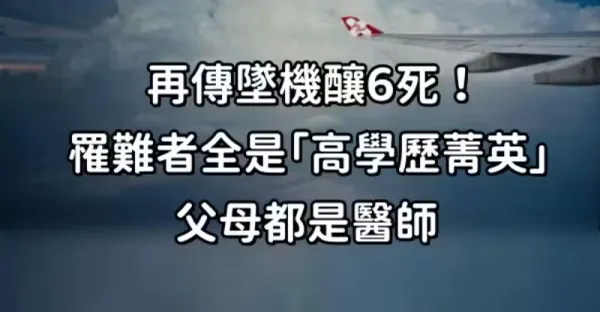 快訊/再傳墜機釀6死!罹難者全是「高學歷菁英」 父母都是醫師!