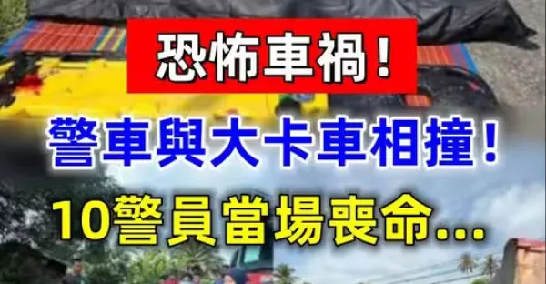 恐怖車禍! 警車與大卡車相撞! 10警員當場喪命...