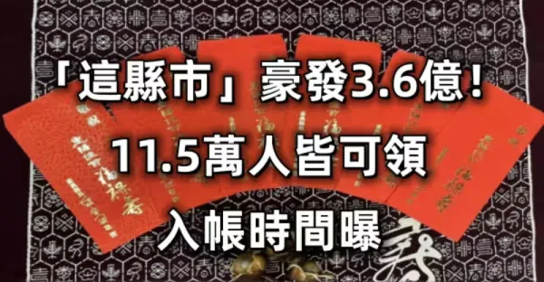 快訊/「這縣市」豪發3.6億!11.5萬人皆可領 入帳時間曝