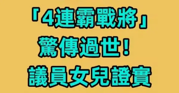 民進黨「4連霸戰將」驚傳過世!議員女兒證實「悲痛辦喪事」