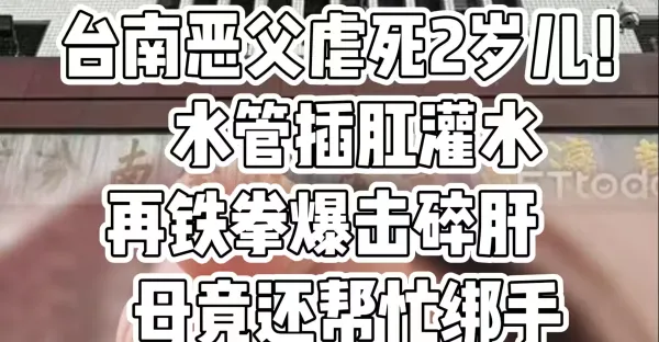 台南惡父虐死2歲兒! 水管插肛灌水再鐵拳爆擊碎肝 母竟還幫忙綁手