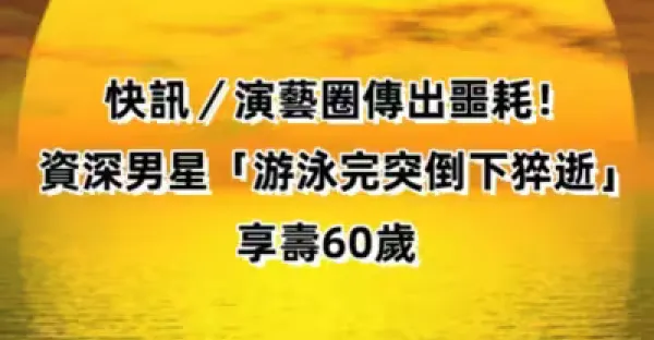 快訊/演藝圈傳出噩耗!資深男星「游泳完突倒下猝逝」享壽60歲