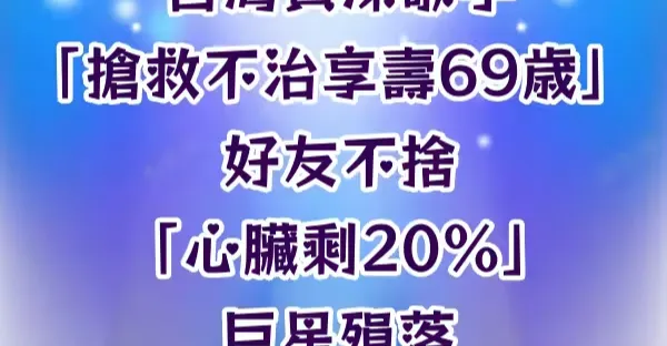 台灣資深歌手「搶救不治享壽69歲」 好友不舍「心臟剩20%」巨星殞落!
