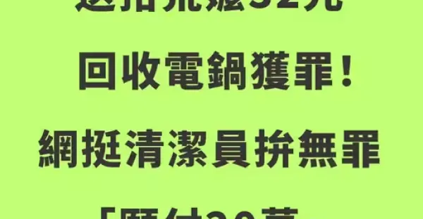 快訊 /送拾荒嬤32元回收電鍋獲罪!網挺清潔員拼無罪「願付20萬」,律師出手了!