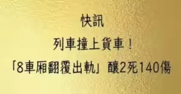 快訊/列車撞上貨車!「8車廂翻覆出軌」 釀2死140傷!
