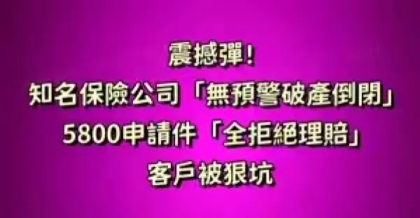 震撼彈!!! 知名保險公司「無預警破產倒閉」 5800申請件「全拒絕理賠」 客戶被狠坑!