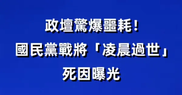 快訊/政壇驚爆噩耗!國民黨戰將「凌晨過世」死因曝光!