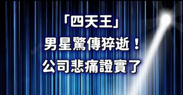 快訊/「四天王」男星驚傳猝逝. 公司悲痛證實了