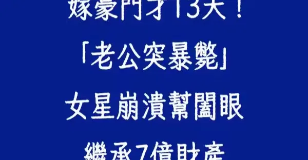 嫁豪門才13天!「老公突暴斃」女星崩潰幫闔眼 繼承7億財產!