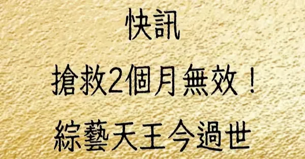 快訊/搶救2個月無效!綜藝天王今過世!