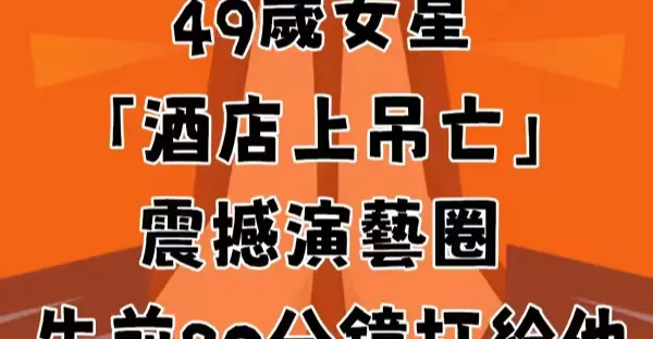 演藝圈噩耗!49歲女星「酒店上.吊.亡」震撼演藝圈 「生前20分鐘打給他」通話內容引鼻酸!
