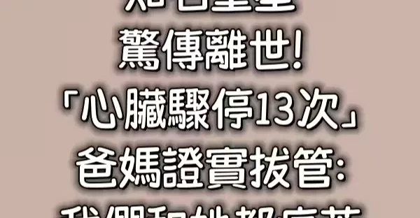 快訊/知名童星驚傳離世!「心臟驟停13次」爸媽證實拔管:我們和她都痛苦!