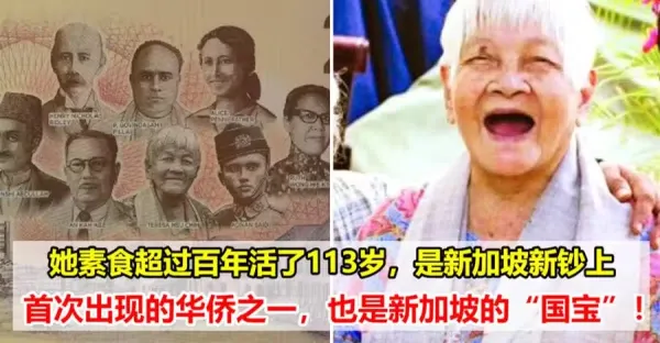 她素食超過百年活了113歲,是新加坡新鈔上首次出現的華僑之一,也是新加坡的「國寶」