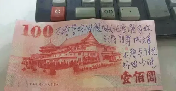偷吃小姨子?100元鈔票上寫著「姐夫在客廳等你」 網友「加了標點符號」竟變好老公