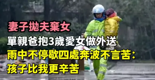 妻子拋夫棄女,單親爸抱3歲愛女做外送,雨中不停歇四處奔波不言苦:孩子比我更辛苦
