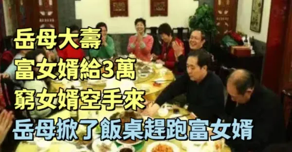 岳母大壽,富女婿送3萬大禮,窮女婿卻空手而來