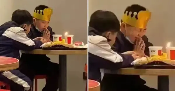 小男孩「肯德基過生日」,朋友一旁靜靜陪伴,暖心畫面被網友一句話整破防:扎心了!